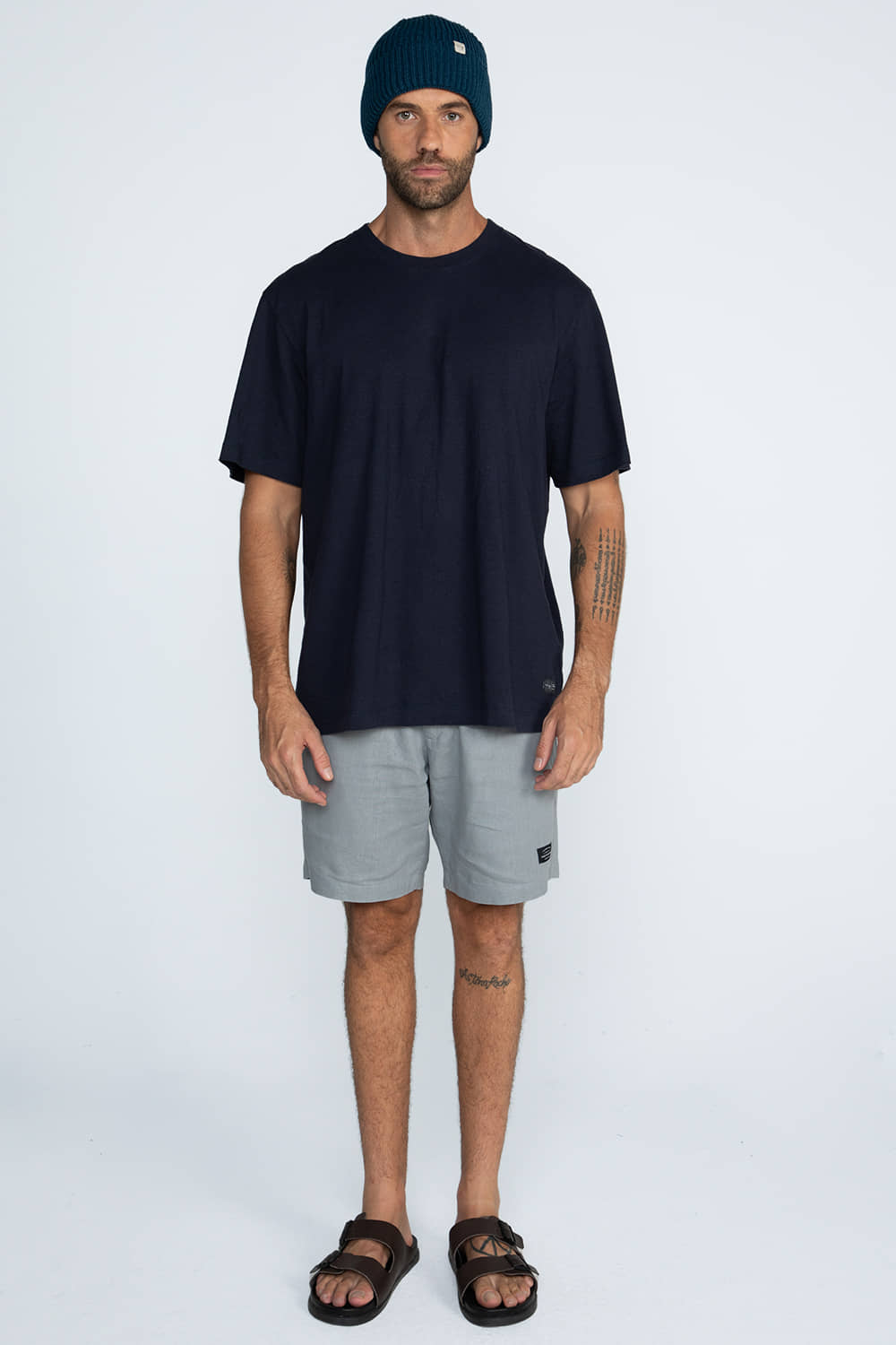 Bermuda com modelagem reta e comprimento mais alongado. Possui bolsos faca laterais, cós com elástico e cadarço para ajuste, além de fechamento por zíper e colchete interno. Conta com bolso traseiro embutido com acabamento em vivo. O tecido garante leveza, frescor e elegância.