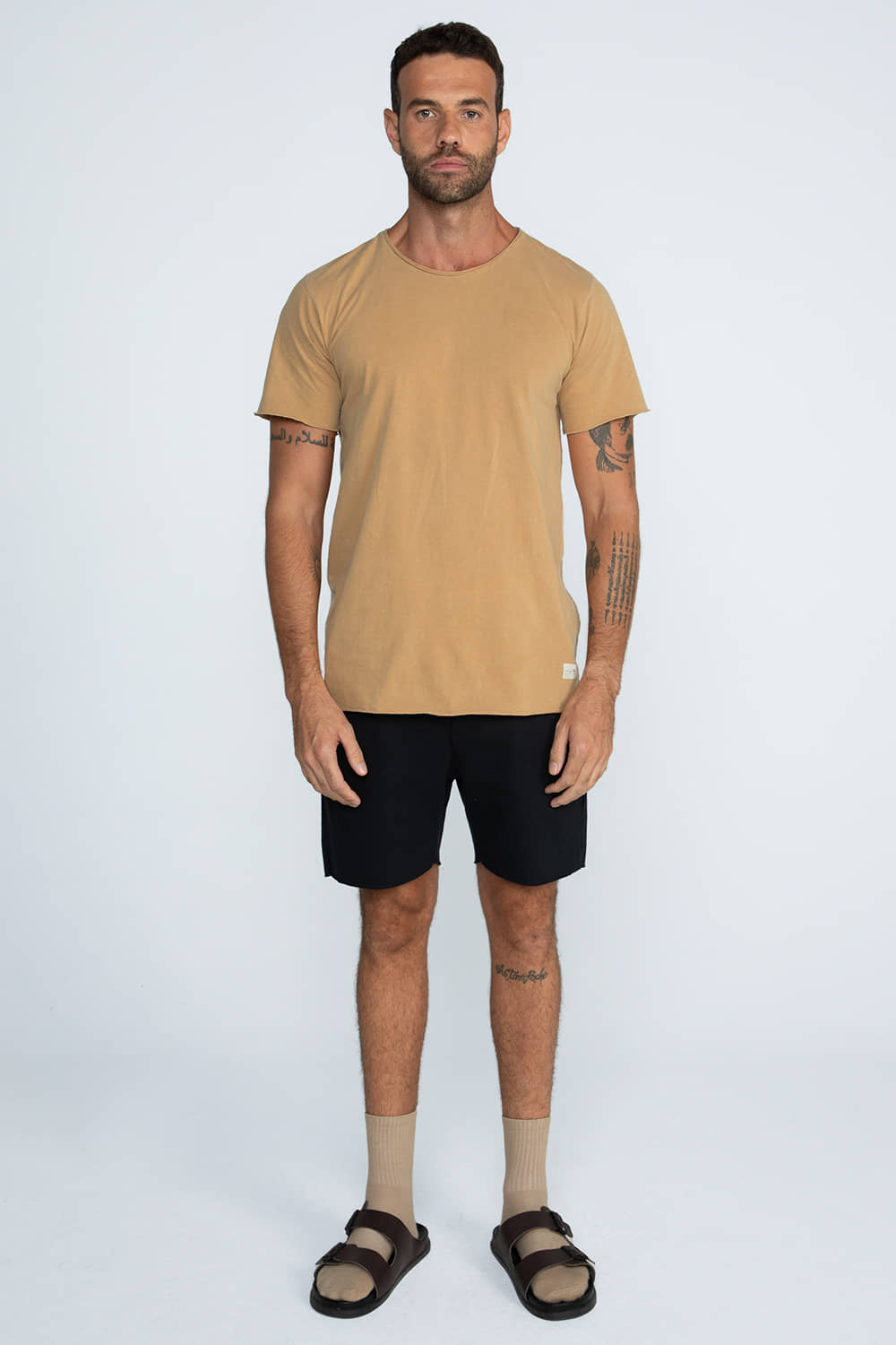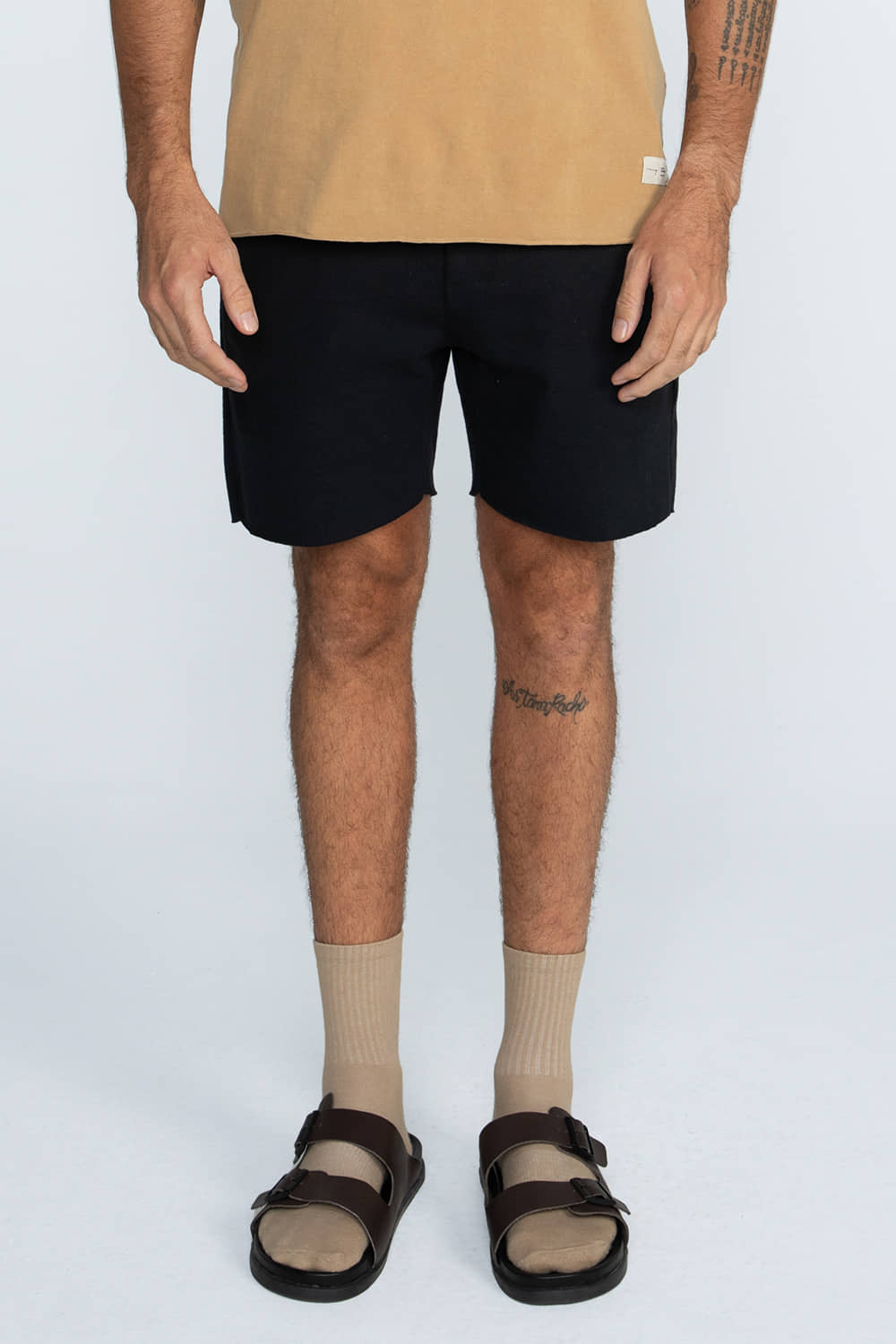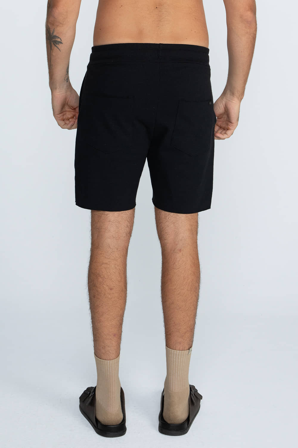 Bermuda em malhão desfibrado ECO, confeccionada com fios 100% desfibrados provenientes de resíduos têxteis reciclados, por isso seu aspecto mais rústico. A modelagem é reta e mais curta, com acabamento de corte a fio.