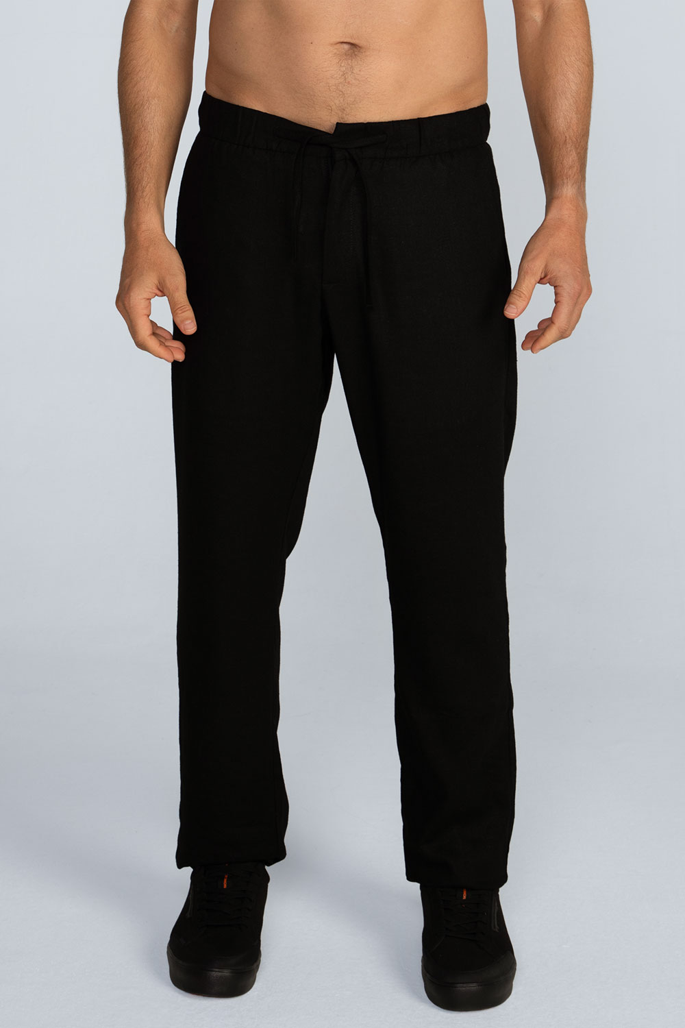 Detalhes: Bolsos faca nas laterais, cós de elástico com cadarço embutido para ajuste, bolso traseiro embutido, fechamento por zíper e colchete.