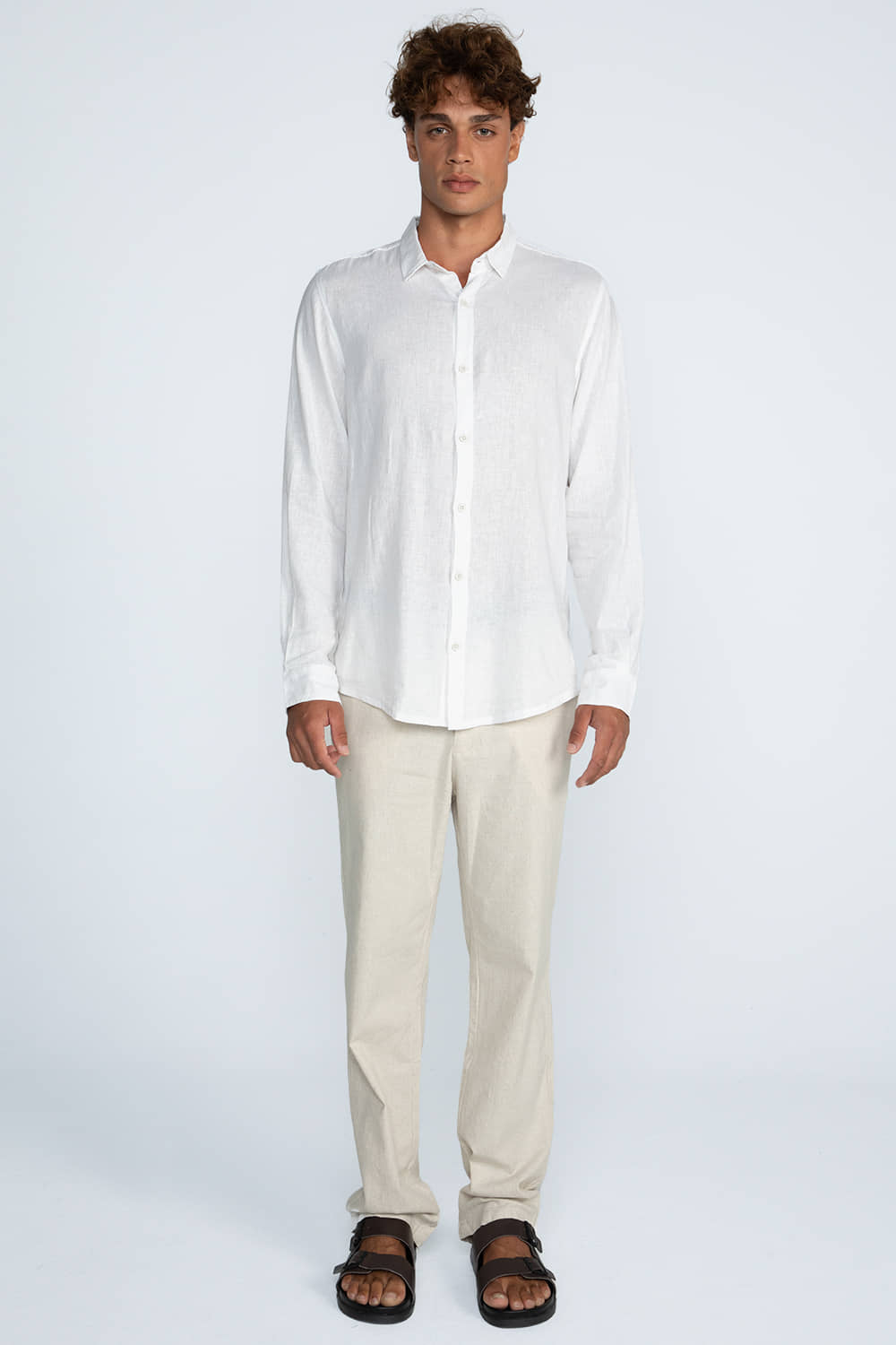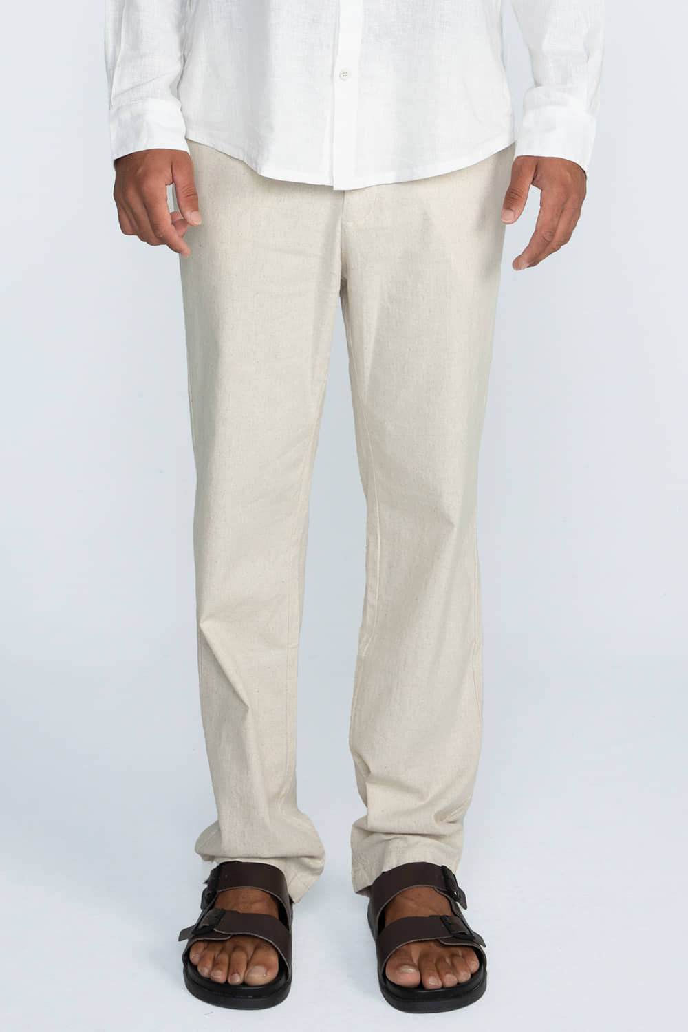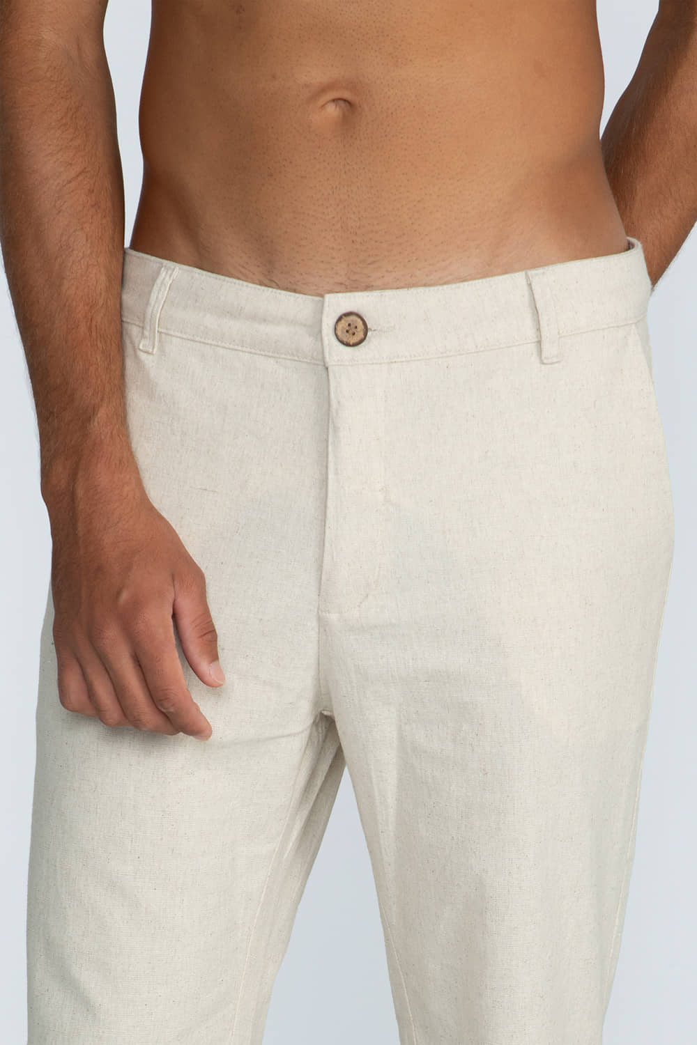 Composição: 74% Algodão, 25,5% Linho, 0,5% Elastano.