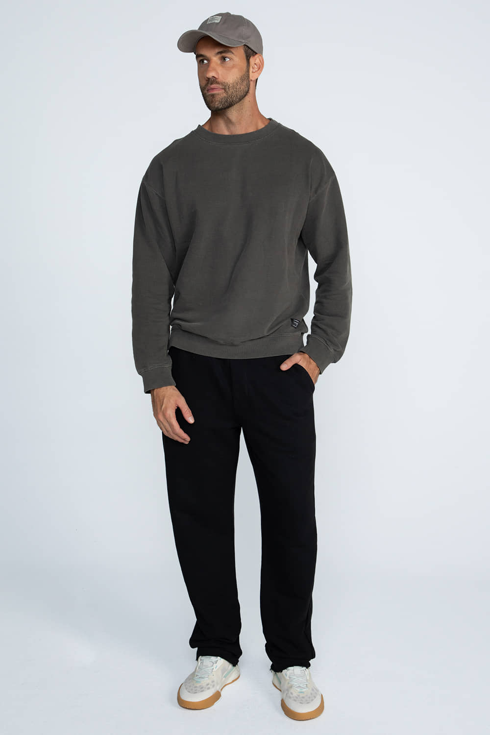 Calça em moletom com cânhamo ECO. Uma peça que combina resistência, conforto e visual natural. O toque macio e o caimento reto garantem liberdade de movimento, enquanto a fibra sustentável eleva a durabilidade da peça.