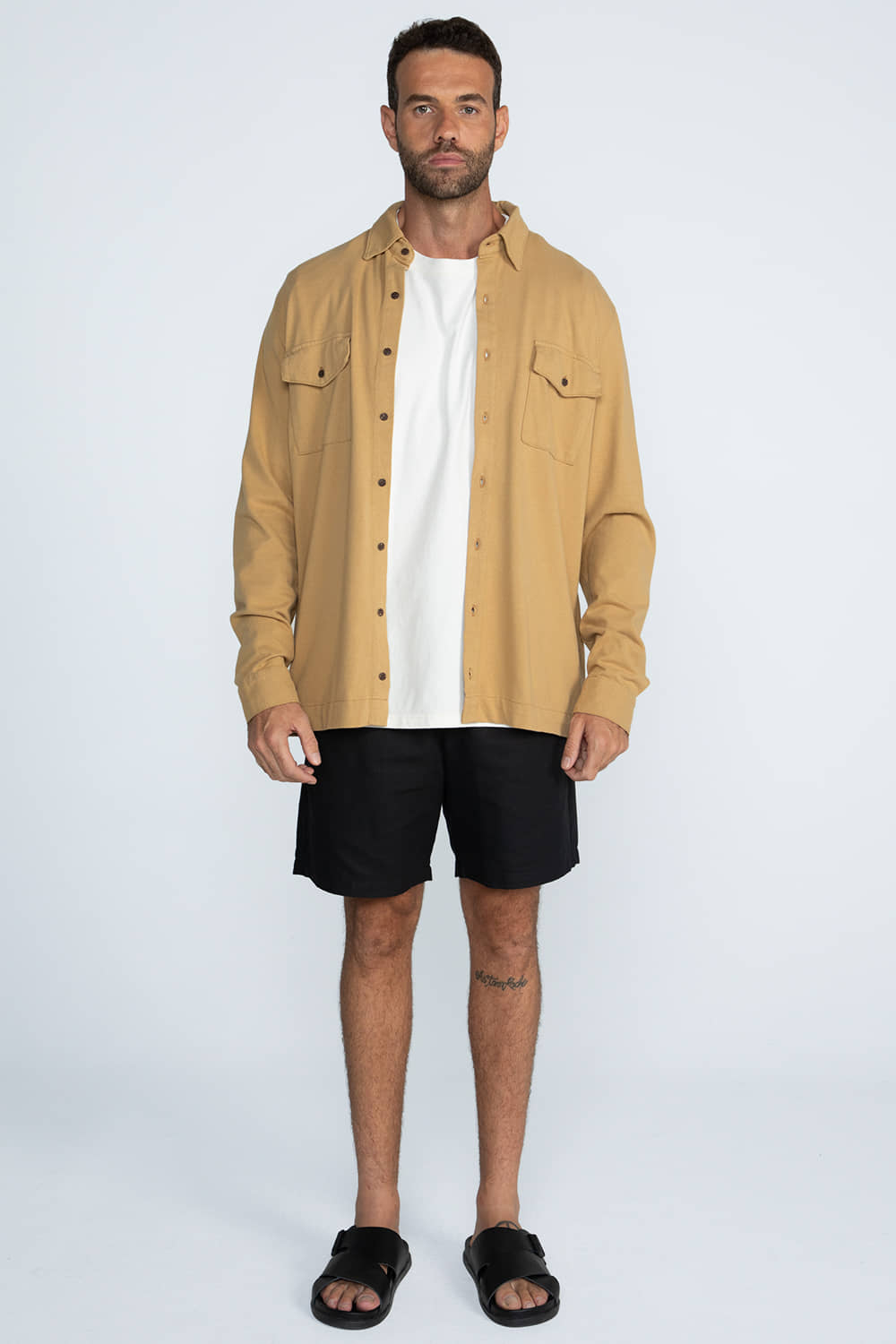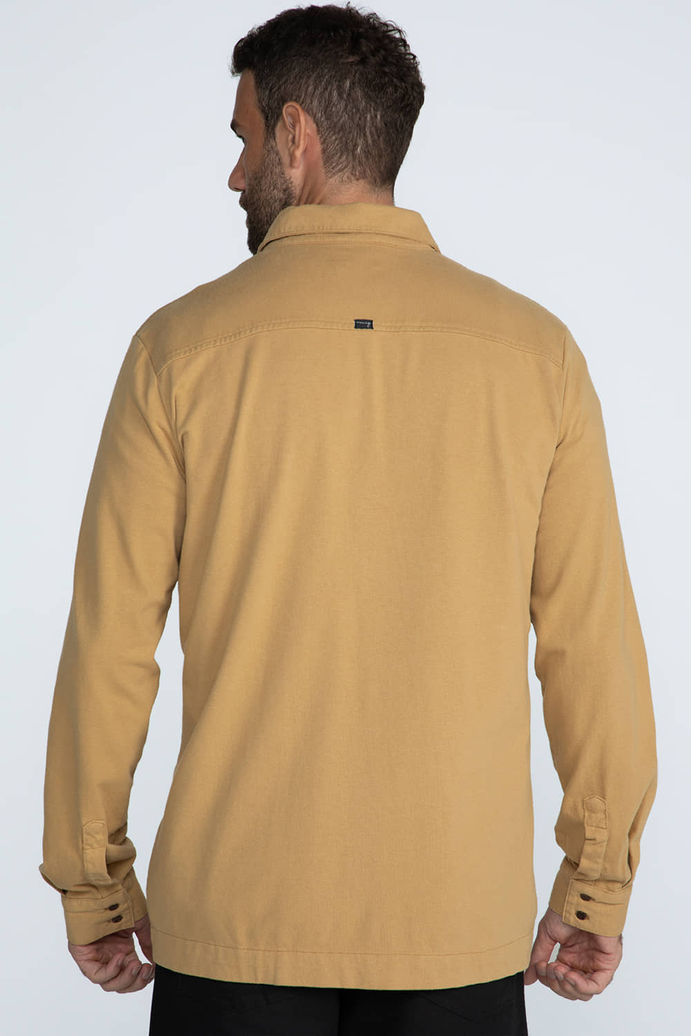 Camisa com modelagem tradicional levemente ampla, confeccionada em malhão com elastano, proporcionando conforto e mobilidade. Possui gola e colarinho estruturados, mangas longas com punho e carcela, além de bainha reta e mais larga. Conta com dois bolsos frontais aplicados com lapela, pala traseira e fechamento frontal por botões de coco. O tecido garante toque macio, flexibilidade e excelente caimento.