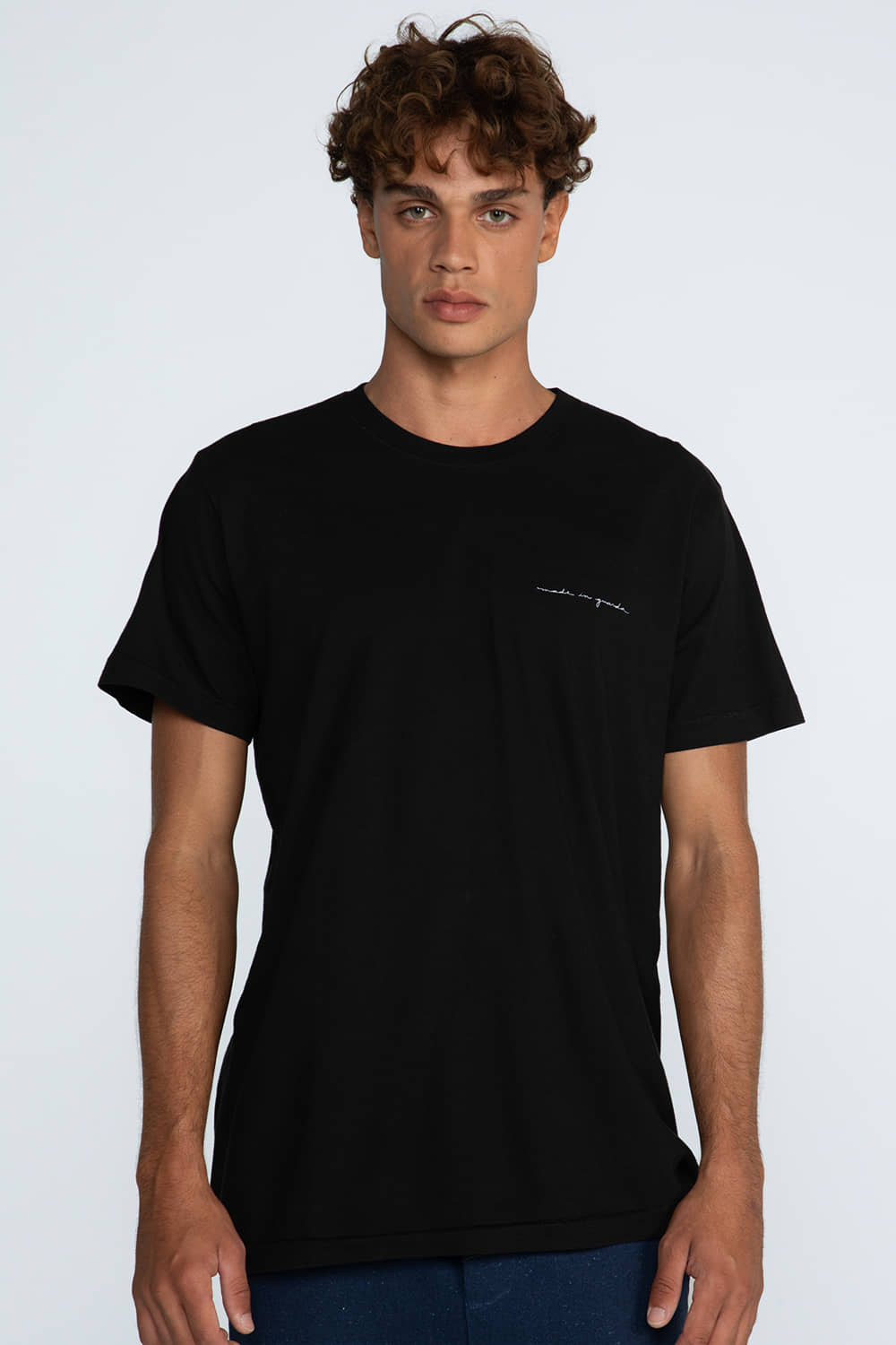 Camiseta masculina confeccionada em meia malha orgânica, com modelagem tradicional e caimento confortável. A peça apresenta tingimento estonado, trazendo um visual moderno.