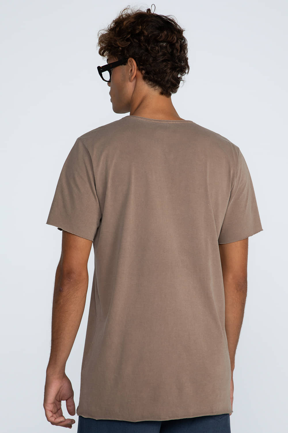 Camiseta em algodão fio 40, um tecido mais fino e de alta qualidade, com toque suave e caimento refinado. A modelagem ampla e alongada traz um visual contemporâneo, enquanto o acabamento a fio reforça o estilo despojado.