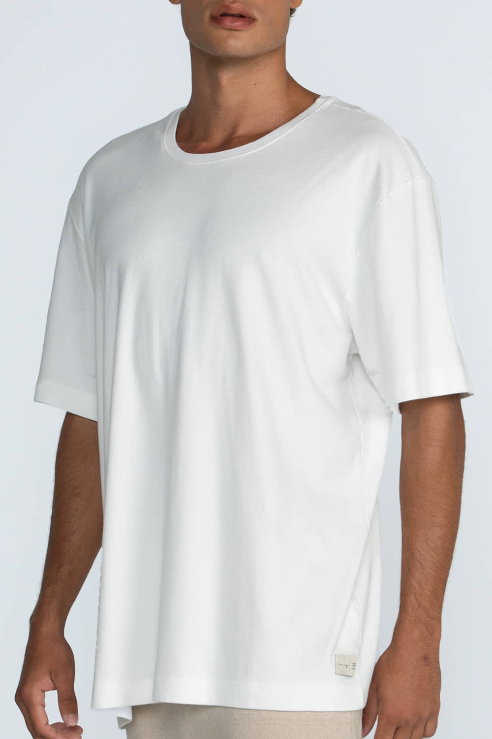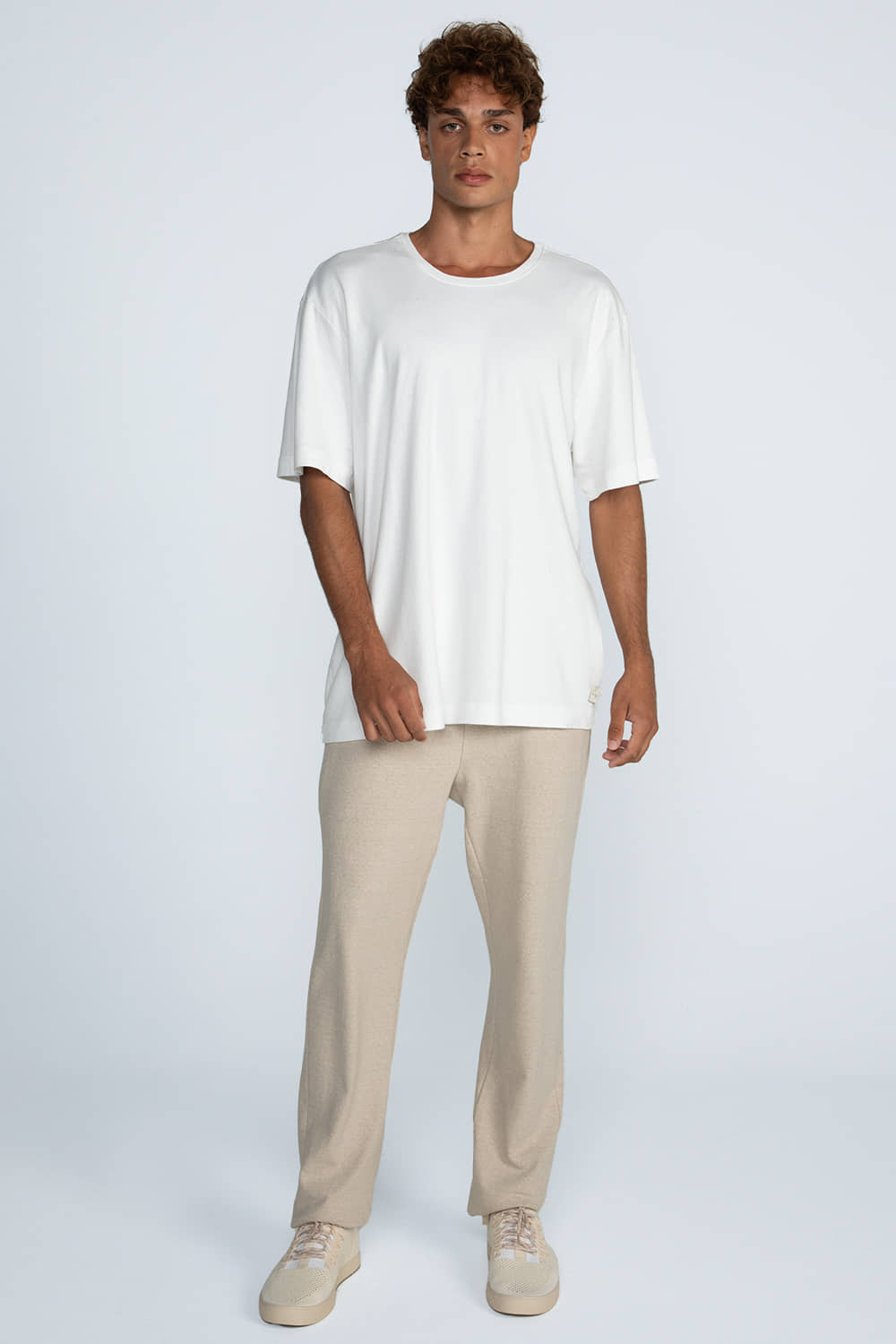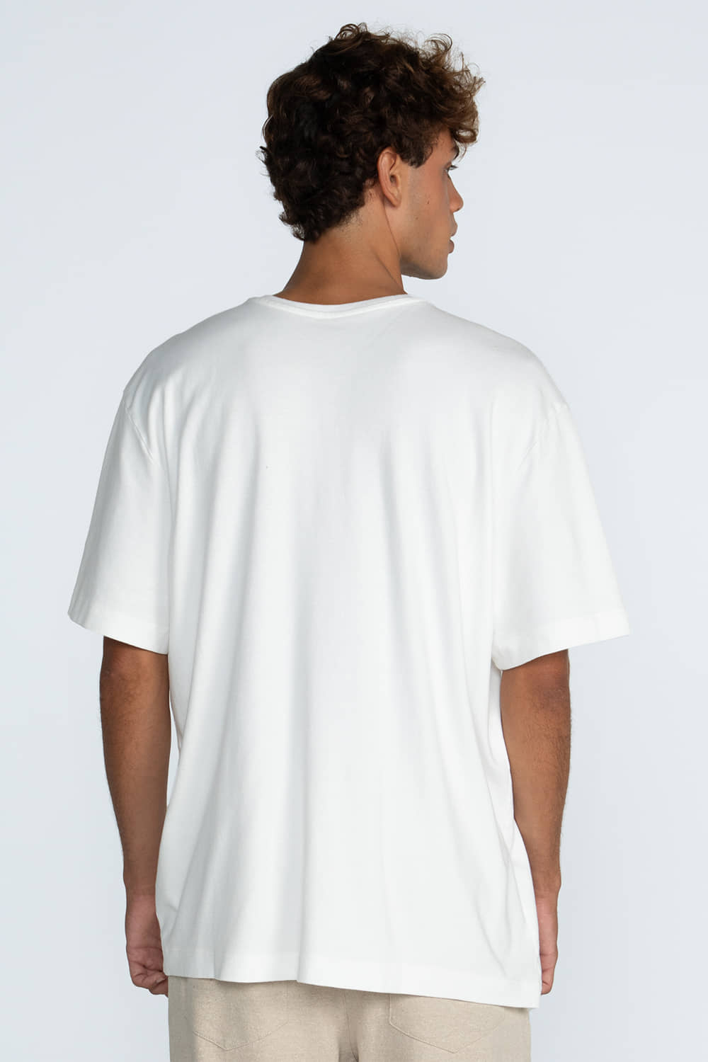 Camiseta confeccionada em malha suedini, com toque extremamente macio, leve e confortável. Possui modelagem oversized e gola mais larga em ribana, garantindo um visual moderno e confortável.