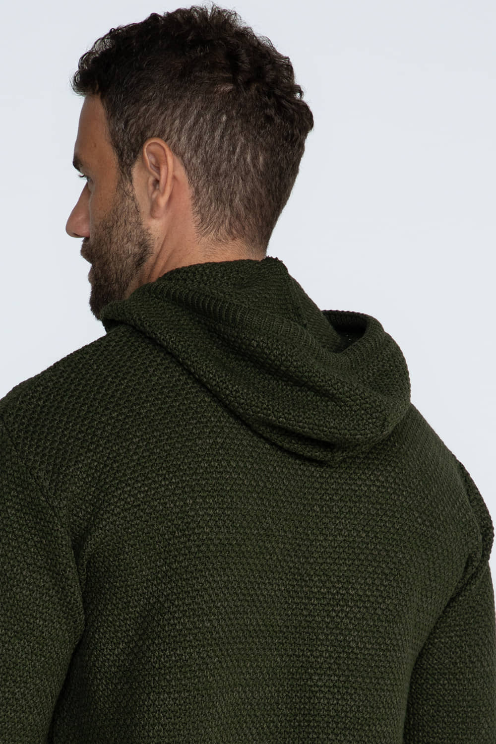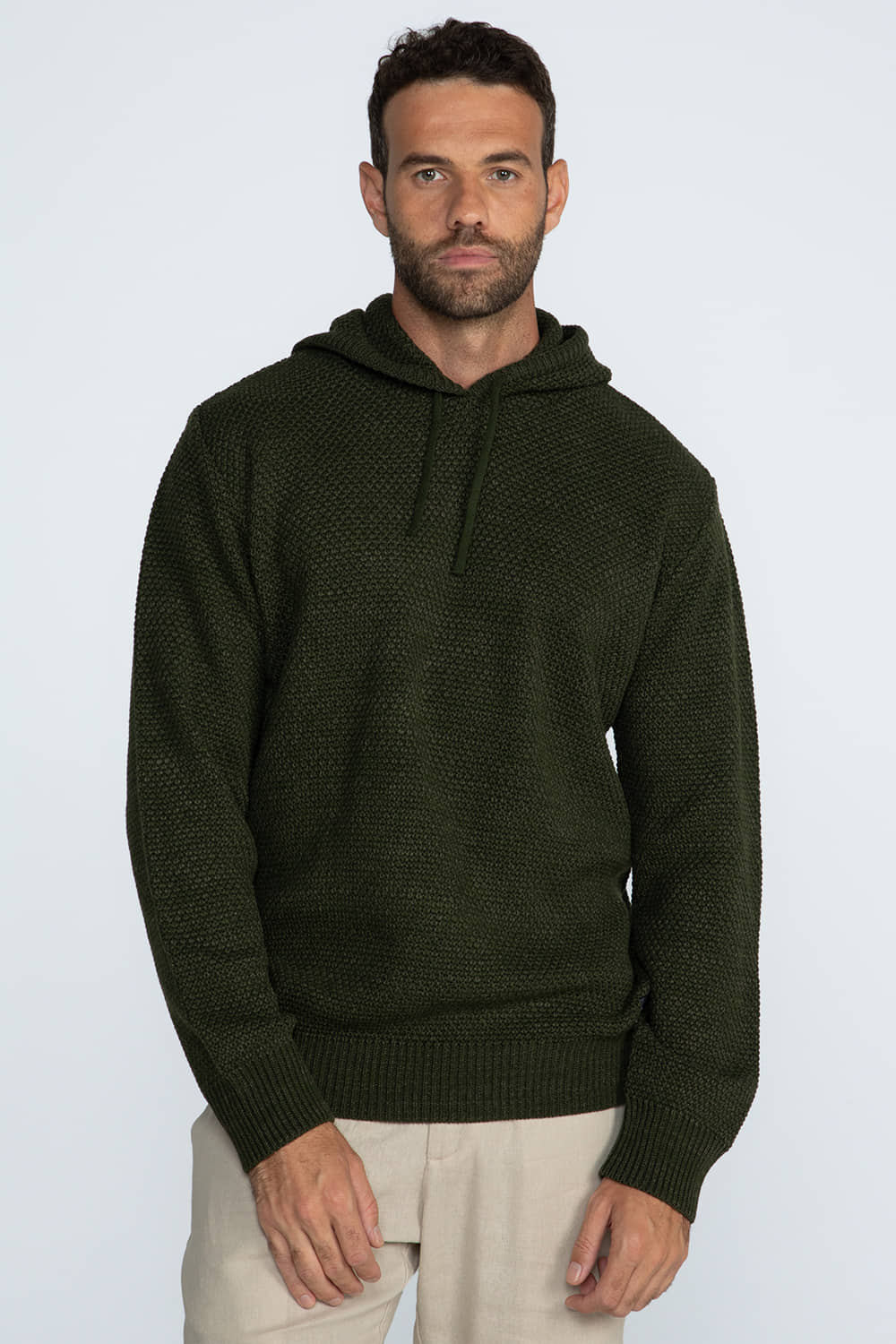 Blusão em tricô, estilo canguru, com capuz e modelagem confortável. Com fio mais encorpado e visual casual, é ideal para os dias frios e uma composição mais despojada.