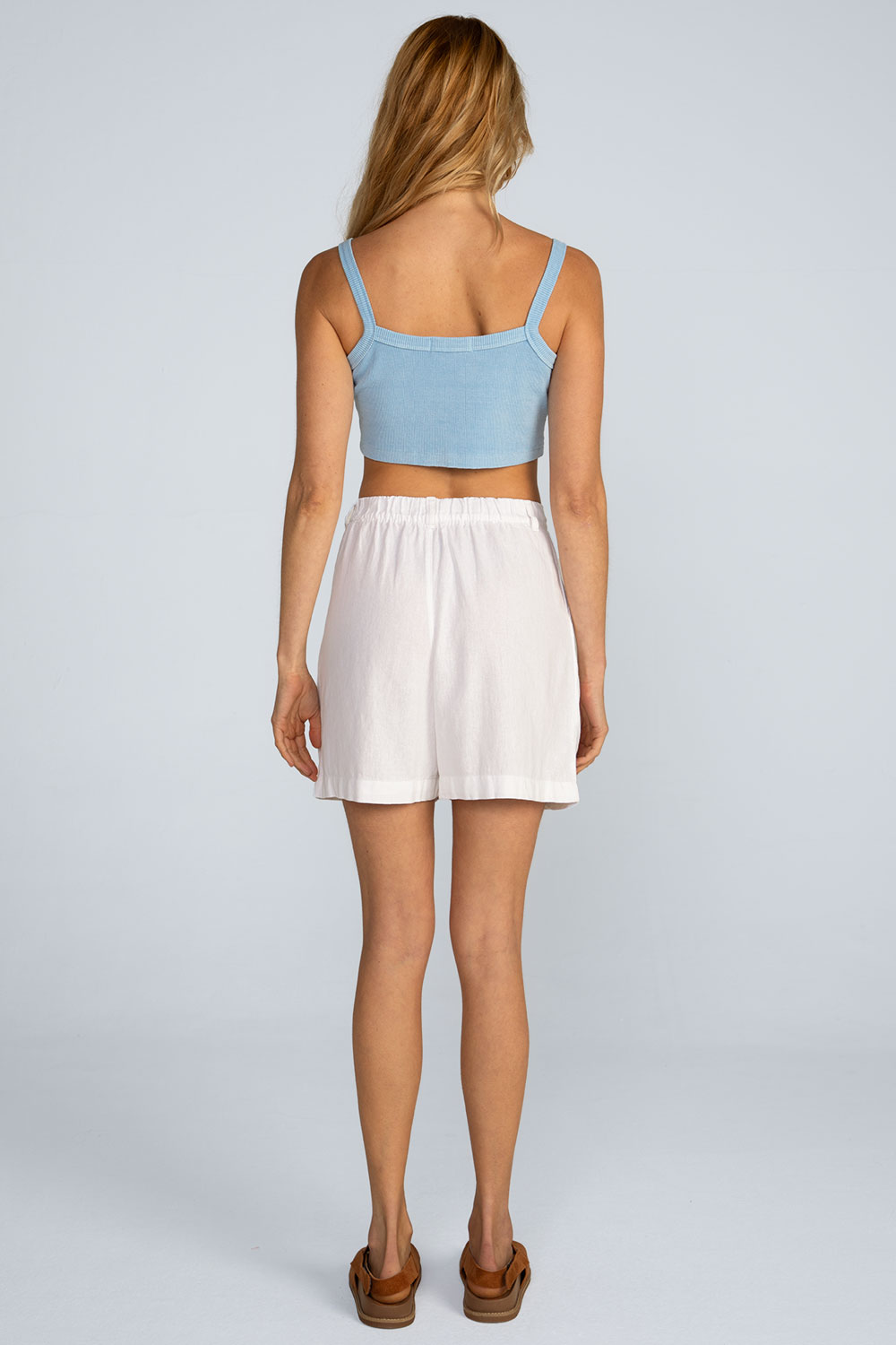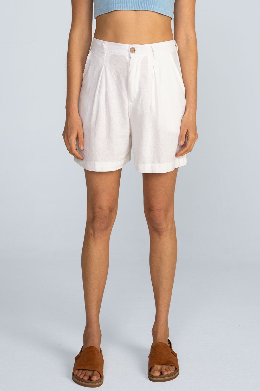 Leve e sofisticado, o short em linho combina conforto e estilo em uma modelagem de cintura alta, comprida e ampla, perfeita para looks de verão elegantes. O cós reto na frente com elástico nas costas garante ajuste personalizado, enquanto a prega fêmea frontal adiciona acabamento refinado. Bolsos laterais e fechamento frontal com zíper e botão de coco.